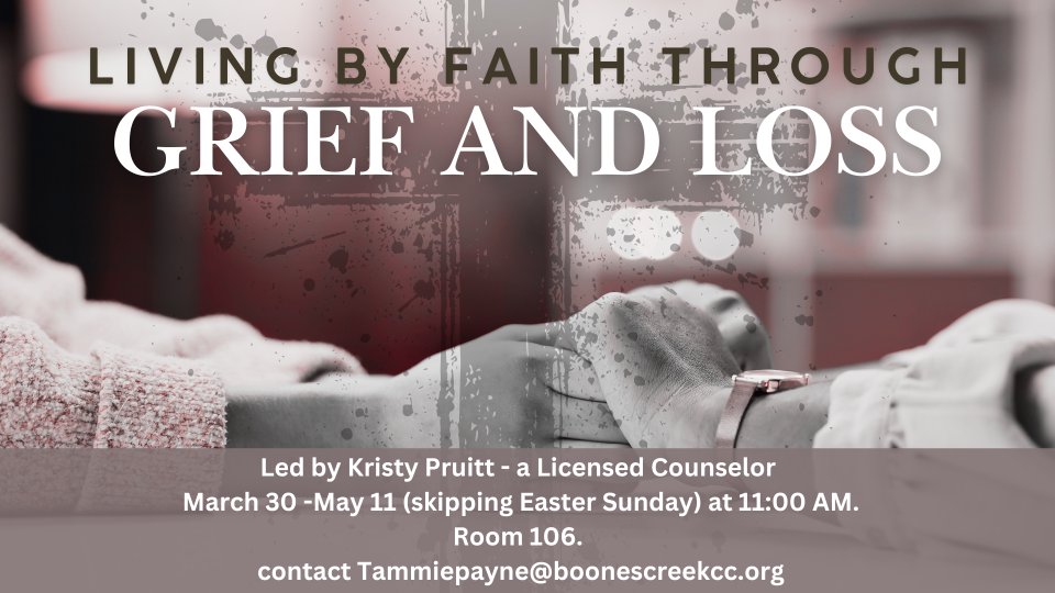 Grief and Loss are some things that impact us all. Whether you are hurting because of the loss of a relationship through life circumstances or death, we will go on a journey together to strengthen your faith and discover healing through the power of God's Word. Led by Kristy Pruitt , Licensed Counselor. Please register below.
