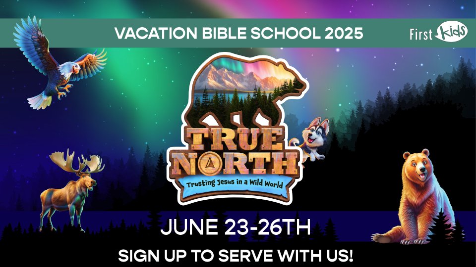 Calling all Crew Leaders! We would love for you to serve with us as a crew leader June 23-26th, 9:00am - 12:00pm daily. Join us at First Bentonville Church for True North VBS where we will share how to trust God in the wild world with ages 4 years old to completed 5th grade.