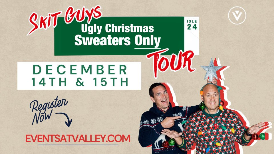 Get ready for an unforgettable event filled with comedy, holiday cheer, and worship as The Skit Guys bring their "Ugly Christmas Sweaters Only" Tour to Valley Church! Tommy Woodard and Eddie James, the hilarious duo known as The Skit Guys, have been entertaining audiences with their comedic skits and heartwarming stories for years. This December, they’re bringing their unique blend of humor and inspiration right here to Roanoke.