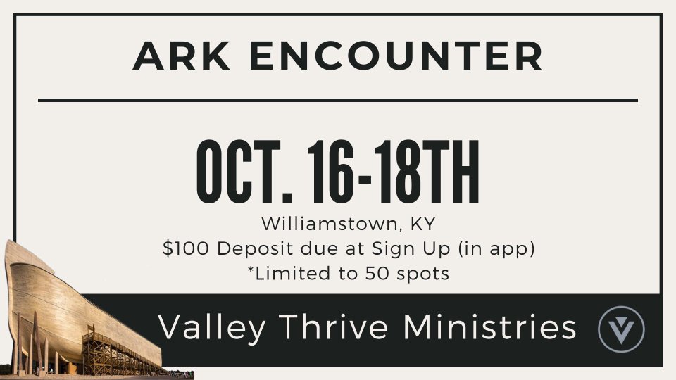 Our Thrive ministry is taking a trip to The Ark Encounter in Kentucky this October (10/16-10/18).