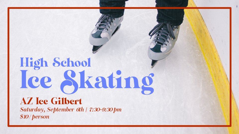 Join us for a fun evening of Ice Skating at AZ Ice in Gilbert AZ! We will meet there at 7:30pm. Pick-up is at 9:30pm. Please make sure you eat beforehand since we will not be eating at this event. Dress warm as well! The cost is $10/person. This includes admission and skate rental.