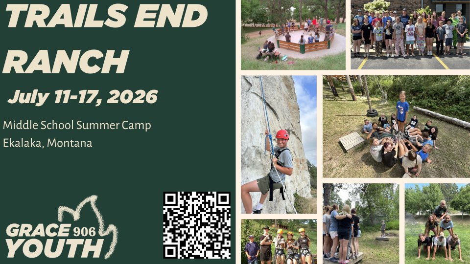 Attention middle school students! We have a total of 31 spots available for our annual youth camp at Trail's End Ranch this summer. This year, we'll be going as "Campers" and are excited to connect with God and each other in Montana! The cost is $175 per camper. Registration is now open online, and an itinerary and more details will be provided soon. (Cash payments due April 27th.)