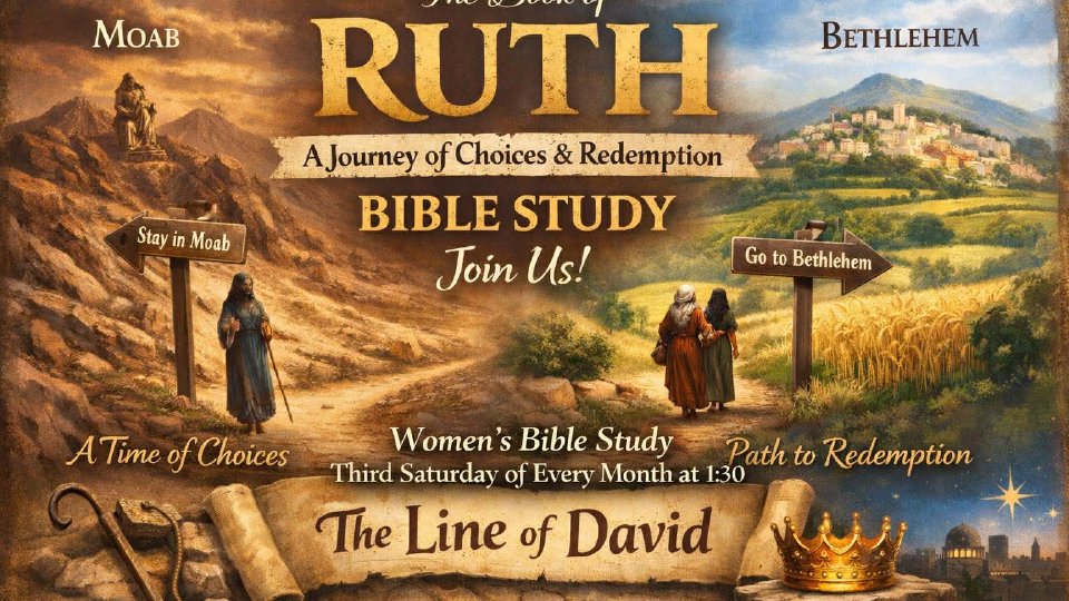 To our sisters in faith - Join us as in our study of the Book of Ruth, every 3rd Saturday of every month at 1:30 PM.