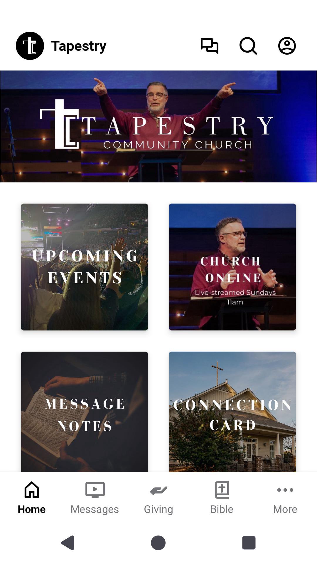 Tapestry is a Christ-centered and biblically based church. Our vision is “To weave Christ into the fabric of the community, one heart and one life at a time.” We are a relational church with a relevant biblical message and outstanding contemporary worship. A neighborhood church where you can build relationships and do life together as the community of Christ. Our size and our people are our greatest assets. Services are Sunday mornings at 11:00am. We hope to see you then!