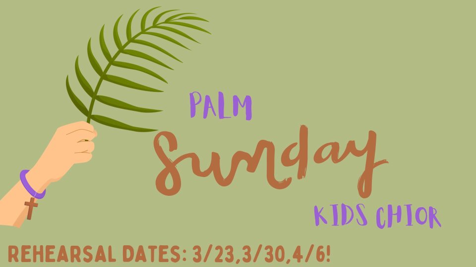 Hi CCKids! Join the Kids Choir to honor Jesus Christ on Palm Sunday! REHEARSAL STARTS THIS SUNDAY!