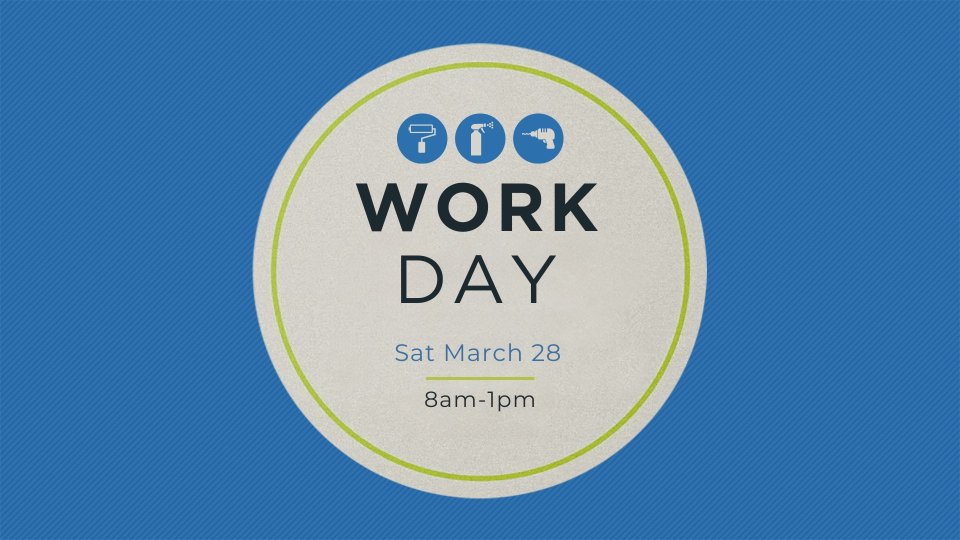 Spring Work Day. Join us Saturday, March 28th from 8 AM–1 PM as we work together on indoor and outdoor projects around the church.