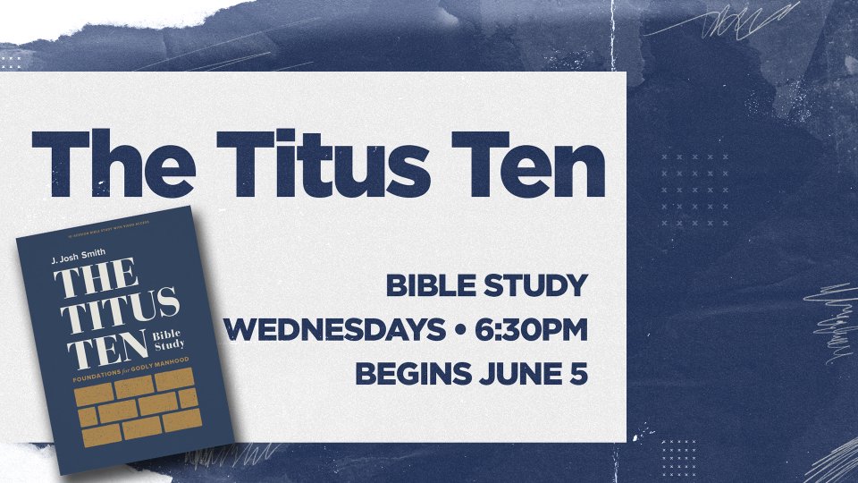 Vision Men, Jason will be leading a 10-week study on the book "The Titus Ten: Foundations for Godly Manhood by J. Josh Smith. This book is a manual for becoming the kind of man God intends for you to be, and leading other men to do the same. Taking ten qualities from the Apostle Paul's short letter to his mentee Titus, The Titus Ten will help you grow in your understanding of the gospel, your identity, your character, your doctrine, and more. The cost of the study is $25. Childcare will be provided if needed!