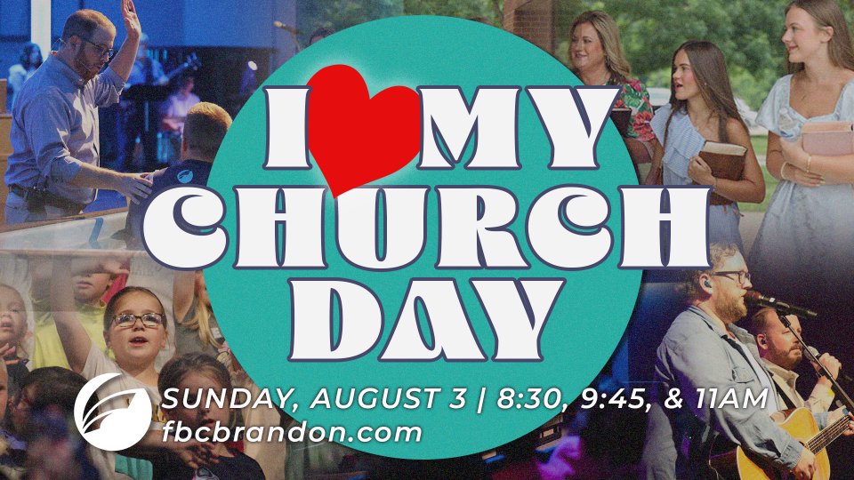 I Love My Church Day is coming in a few weeks and we want to encourage you to invite any unchurched family or friends to join you at church on Sunday, August 3. God is moving here at FBC Brandon and we want everyone to know about it!