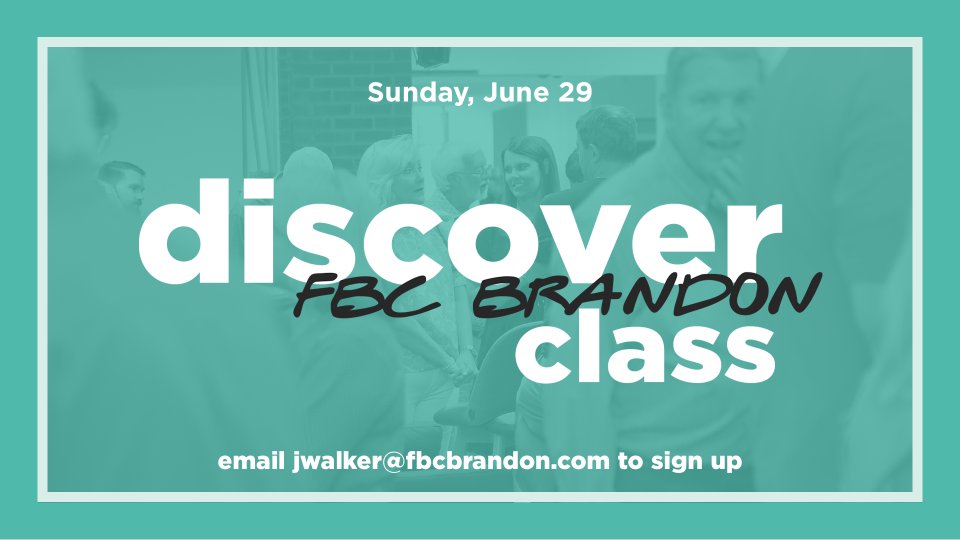 If you have been considering joining FBC Brandon, we invite you to attend our next Discover FBC Brandon Class. There, you will hear from each ministry area as well as what we as a church believe and expect from church members. Lunch is provided so please email Jamie Walker to sign up.