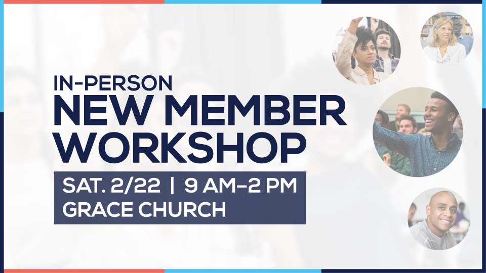 Hey Grace! Come out and learn about the heart, history and vision of Grace Church at our in-person New Member Workshop. We will discuss the Doctrines of Christ, Finding Freedom in Christ, and Servant Leadership. This workshop is vital for those who desire to serve and get plugged in, here at Grace. So, if you are a new or existing member or simply need a refresher, be sure to register by Thursday, February 20th at 5 pm.
