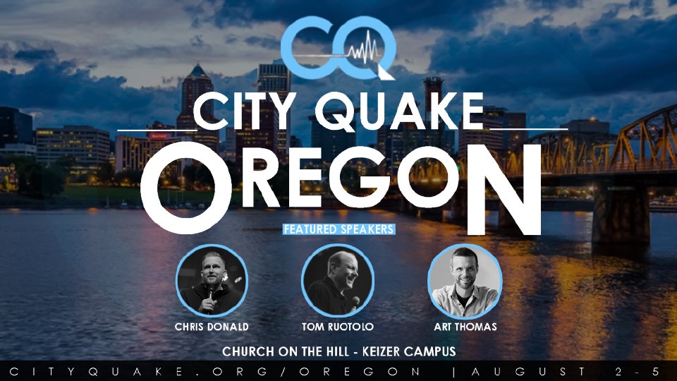 City Quake is a three and a half-day event that will propel you to become who Jesus created you to be! As Christians, we are to model Jesus and make Him known everywhere we go. However, we often settle for much less. City Quake will motivate and activate you to “live out” what you believe. Join Tom Ruotolo, Chris Donald, and Art Thomas for this life-changing event. Come and receive the confidence to walk-in signs, wonders, and miracles — energized by the love of Jesus — every day! Event Schedule: Wednesday, August 2 7:00 PM - Session (Doors open at 6:15 PM) Thursday, Friday, Saturday, August 3-5 9:00 AM - Session (Doors open at 8:30 AM) 11:30 AM - Love in Action and Lunch 2:00 PM - Session (Doors open at 1:45PM) 4:30 PM - Love in Action and Dinner 7:00 PM - Session (Doors open at 6:30 PM) Location: Church on the Hill-Keizer Campus 2105 Keizer Rd NE Keizer, OR 97303 Want to help make City Quake: Oregon an amazing event? Click the link below to register as a volunteer and let us know how you can help! There are many ways to serve through this event. Copy and paste the link below to sign up to volunteer: https://docs.google.com/forms/d/e/1FAIpQLSc-sS0ypD1eIp0toKq41VcyqA-U7VxwIChPCI9bXVje6NiUag/viewform