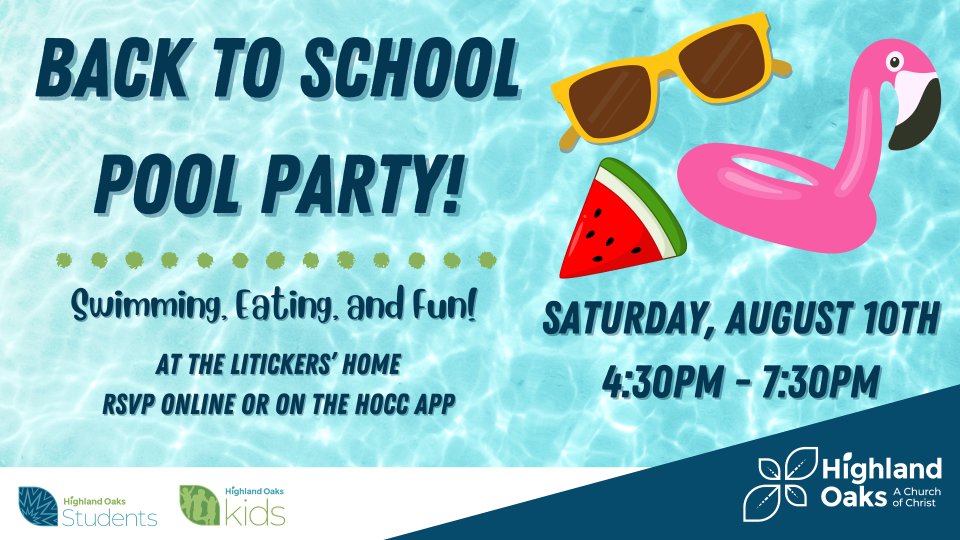 You’re invited to party with us Saturday, August 10th from 4:30-7:30 P.M. I’ll grill some hamburgers and hotdogs. Plan to hang out and have fun! You just need to bring a towel, sunscreen, and some flippy floppies! Food costs will be covered.