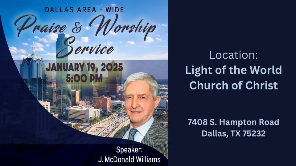 Join us on Sunday, January 19th at Light of the World Church of Christ - Dallas for our next Area Wide Praise & Worship Service..