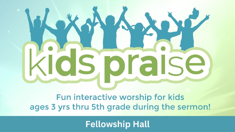 Join us for Kids Praise in the Fellowship Hall on Sunday morning. We welcome kids ages 3 years through 5th grade to join this interactive and fun worship time. For safety, we ask that every child has a check-in tag. We will meet the volunteers in the lobby, outside the Worship Center. Please feel free to walk your child to Kids' Praise if desired. Please pick up your child from the Fellowship Hall promptly at the conclusion of worship and have their corresponding "parent tag".