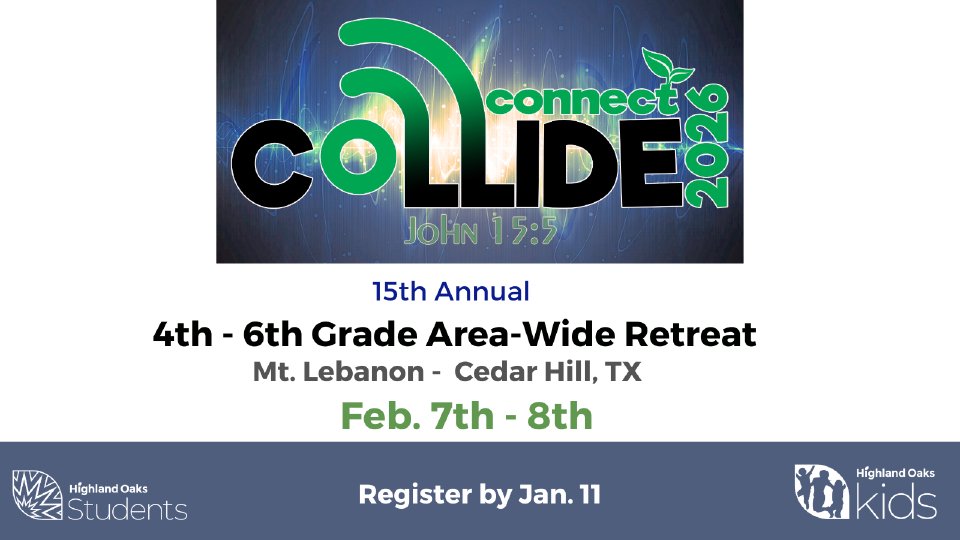 Join us February 7th and 8th for our 4th-6th grade Area Wide Retreat at Mt. Lebanon in Cedar Hill, TX.