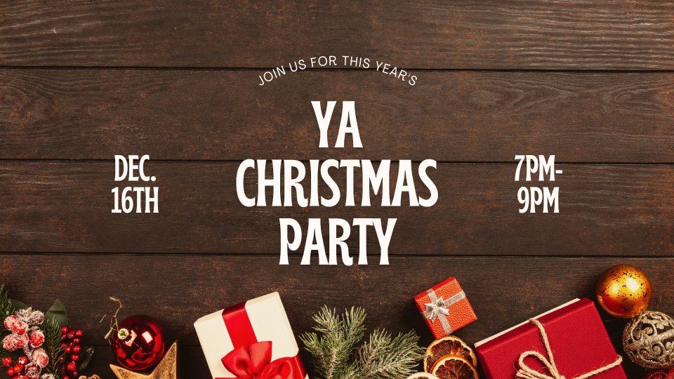 Join us Tuesday Dec. 16th at 7pm for our annual YA Christmas Party! We will start the night off with food and fellowship, followed by festive games to compete for a prize, and end the night with a white elephant gift exchange. Gift exchange rules: price range is free to $10, bring it wrapped and unmarked. Other prizes will be given to the best Christmas sweater and one random winner chosen from the RSVP list. RSVP on the Hillside app, bring your gift, wear your sweater, and invite a friend to enjoy the holiday cheer! 🎄