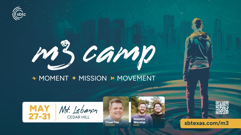 Cost: $350 It is our desire that M3 camp would be a place where students would have a moment with Jesus Christ that would change their life. But we don’t want it to stop there. We hope this moment propels them into mission beyond the campground into their home, schools, and places of recreation. Ultimately, our prayers are that this would lead to a gospel movement of students to reach Texas and impact the world with the Gospel. M3 camp is intentional about evangelism. Students will clearly hear the gospel and lost teens will be given an opportunity to profess Christ as their Lord and Savior. M3 also wants to challenge students to live evangelistically in their communities and to live missionally in the world. We offer breakout sessions to help students maintain and grow in their relationship with Christ and we utilizes small group experiences to promote discussion, prayer, fellowship, and encouragement.