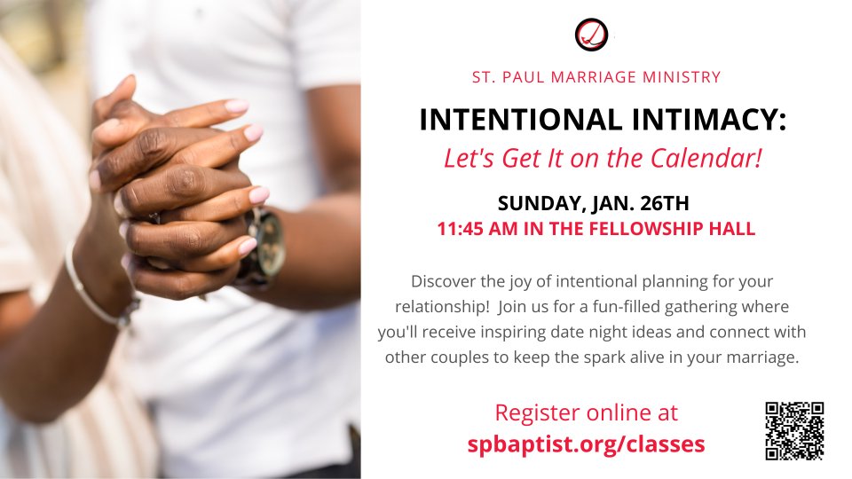 This one-time class will help you fireproof your marriage by planning a year of date nights with your spouse. Get inspiring date night ideas, receive encouraging words, and enjoy connecting with other married couples. Don't forget to bring yourselves and a calendar—let's be intentional about keeping the connection alive throughout the year!
