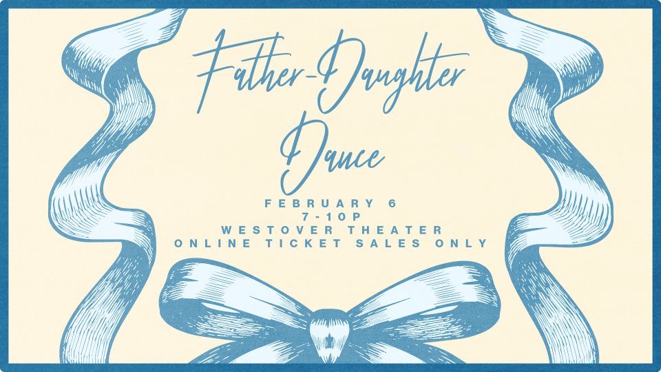 Our annual Father-Daughter Dance will be held in the Westover Theater on Friday, February 6, 2026, from 7-10pm.