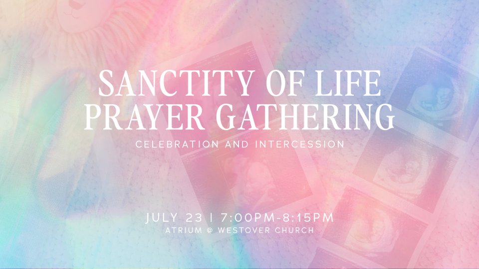 Join us in the Atrium here at Westover for a special time of prayer and intercession as we thank God for the ongoing ministry of the Ruby Marie mobile unit, which serves women and families in our community. We'll also spend time praying for life to be honored and protected in our city and beyond.
