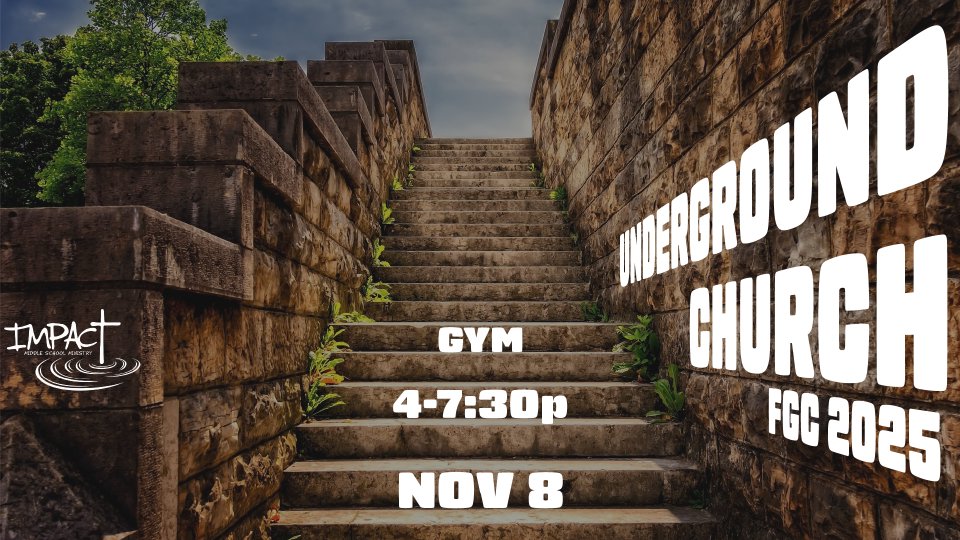 This one is for our Impact and Fuse students: Underground Church! On Saturday, November 8 beginning at 4p, students will be starting in the gym and running throughout the church, learning about the persecuted church throughout the world. Tom Lin will also be speaking to our students at the end of the evening.