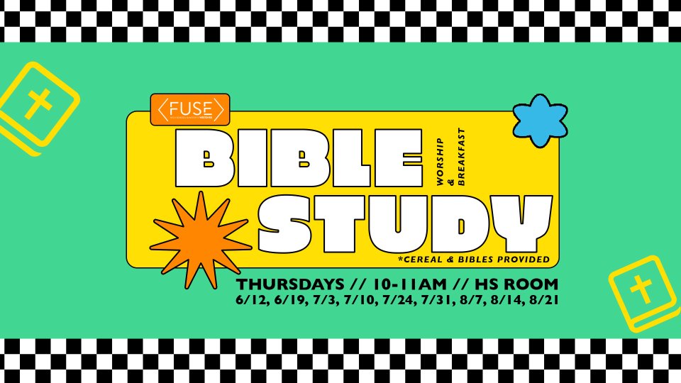 Come join us on Thursdays from 10–11am in the Fuse Room as we dive into God’s Word, worship together, and grow in our faith. We’ll have breakfast and Bibles ready for you—just bring yourself and a friend!
