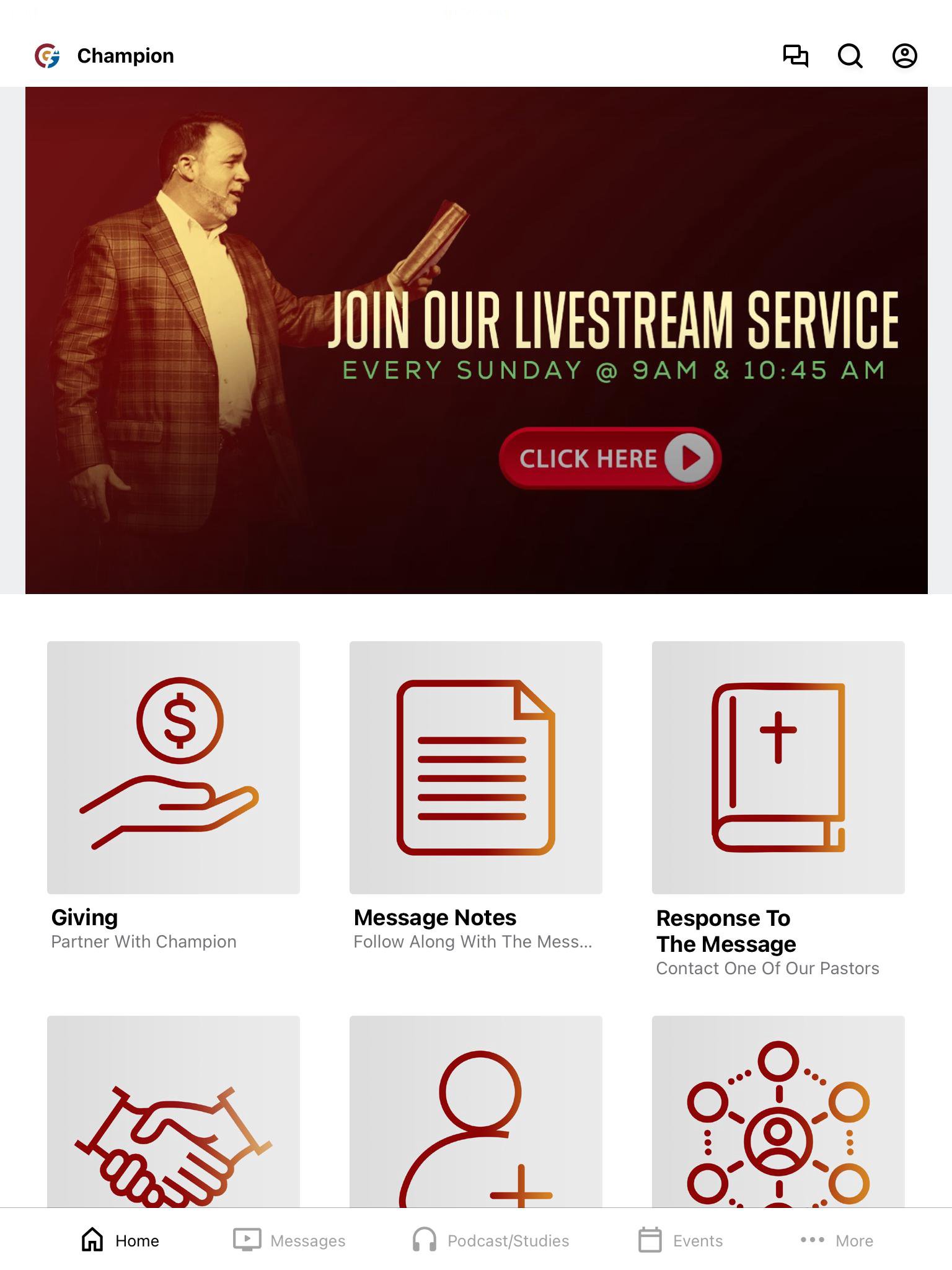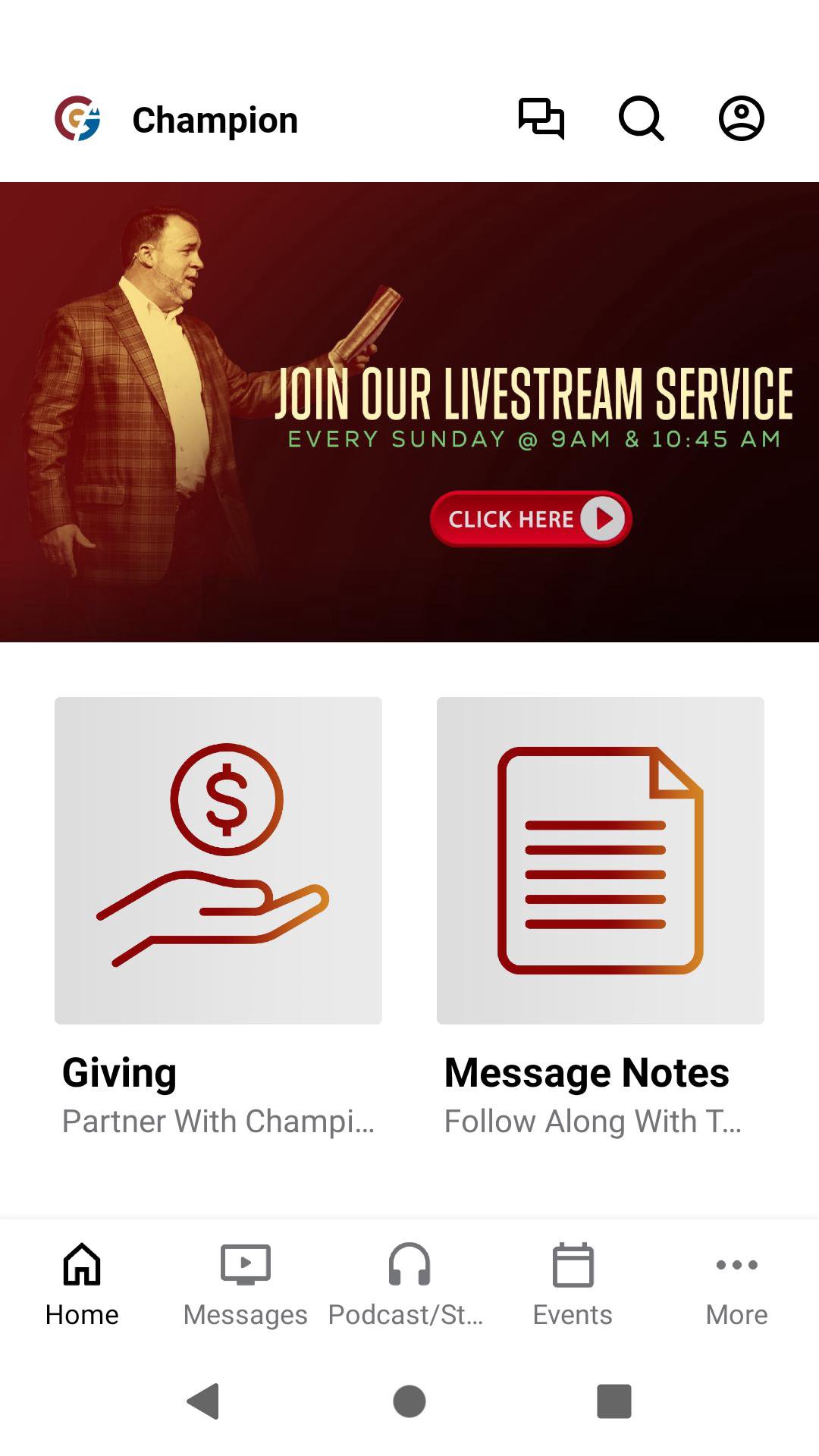 This app will help you stay connected with the day-to-day life of our church. With this app, you can: watch or listen to past messages; stay up to date with push notifications; share your favorite messages via Twitter, Facebook, or email; and download messages for offline listening.