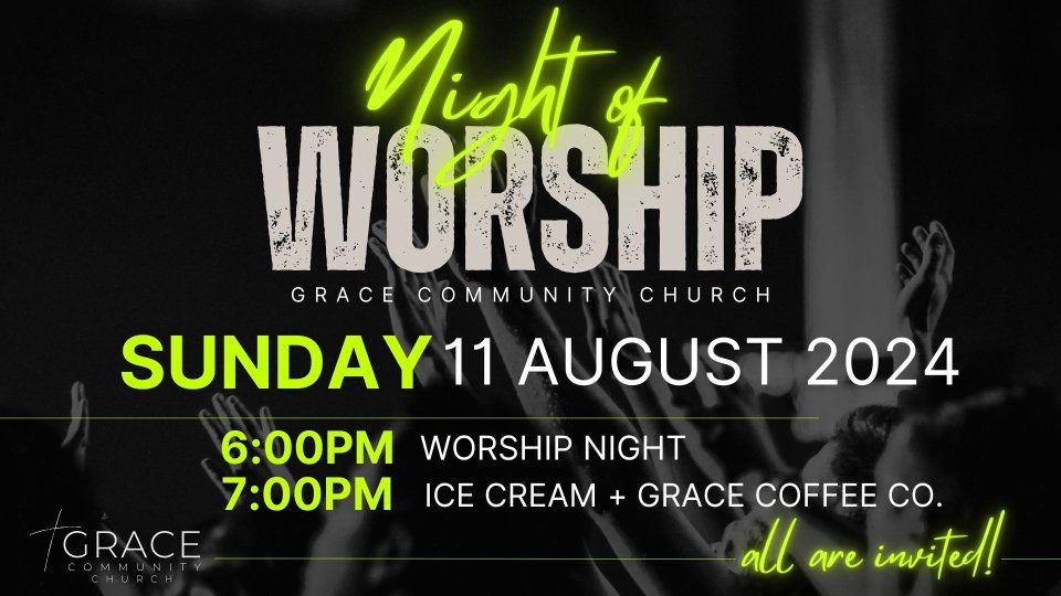 Join us for a Worship Night, August 11 from 6:00PM-7:00 with ice cream afterwards! The Grace Coffee Co. will be open before the service at 5:30PM and after until 7:30PM. Come out for a night of music, praise, and community!