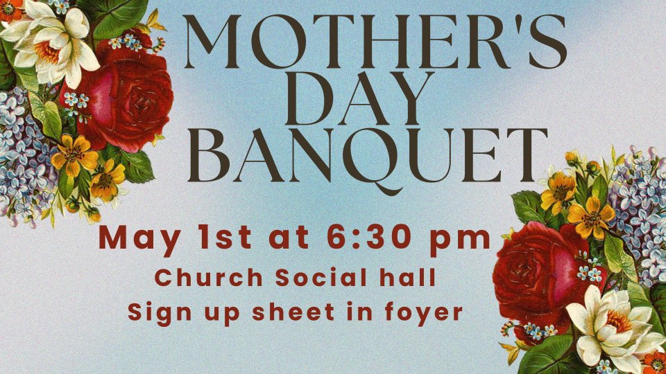 Join us for our Mother’s Day Banquet on Thursday, May 1 at 6:30 PM!