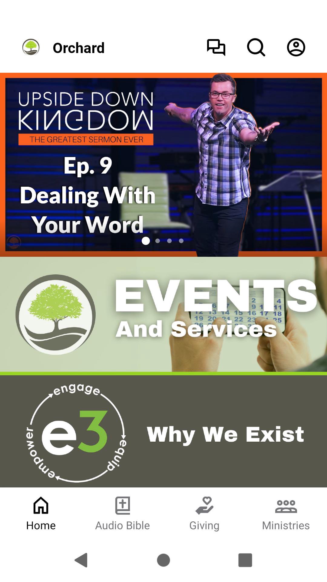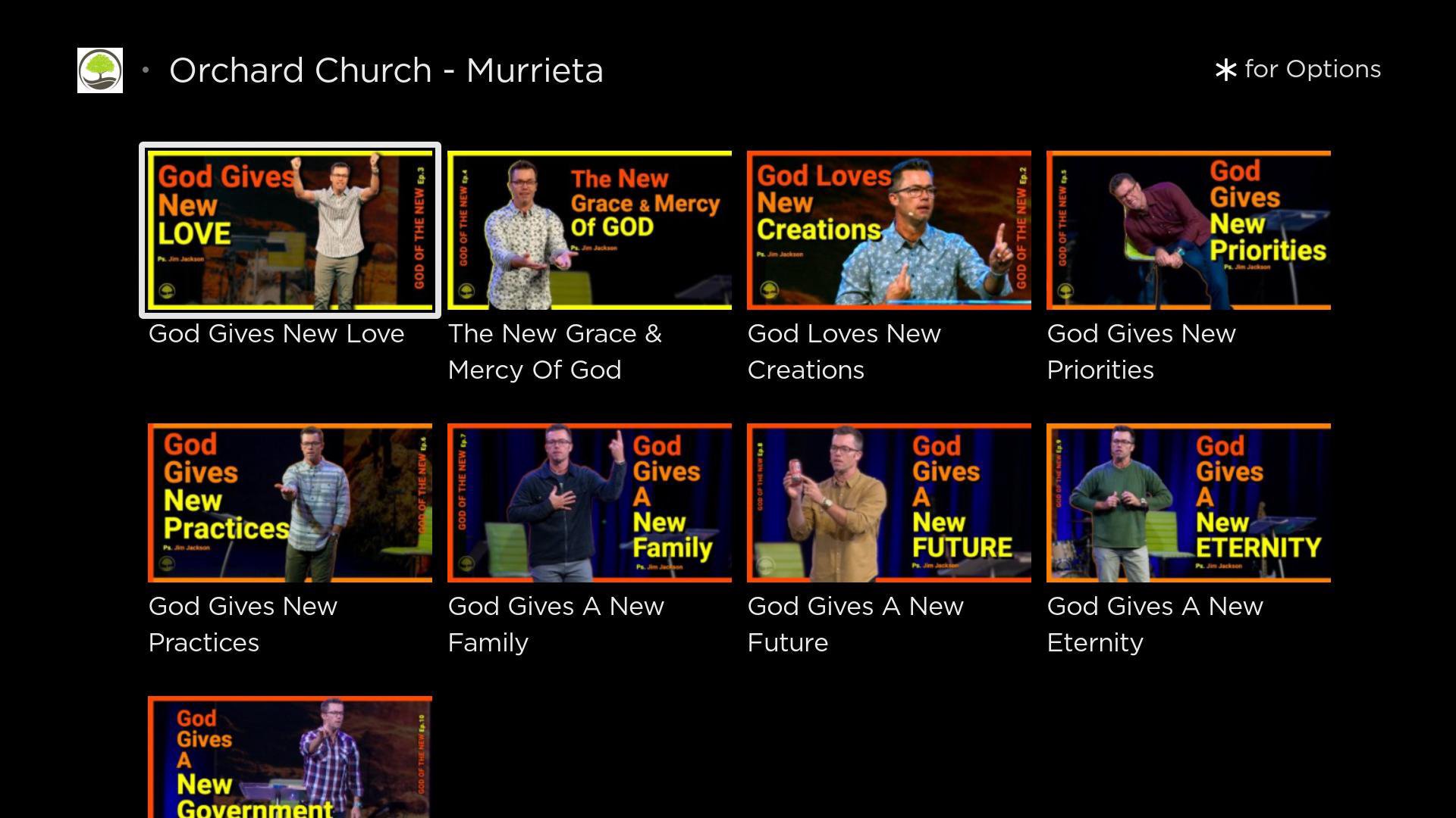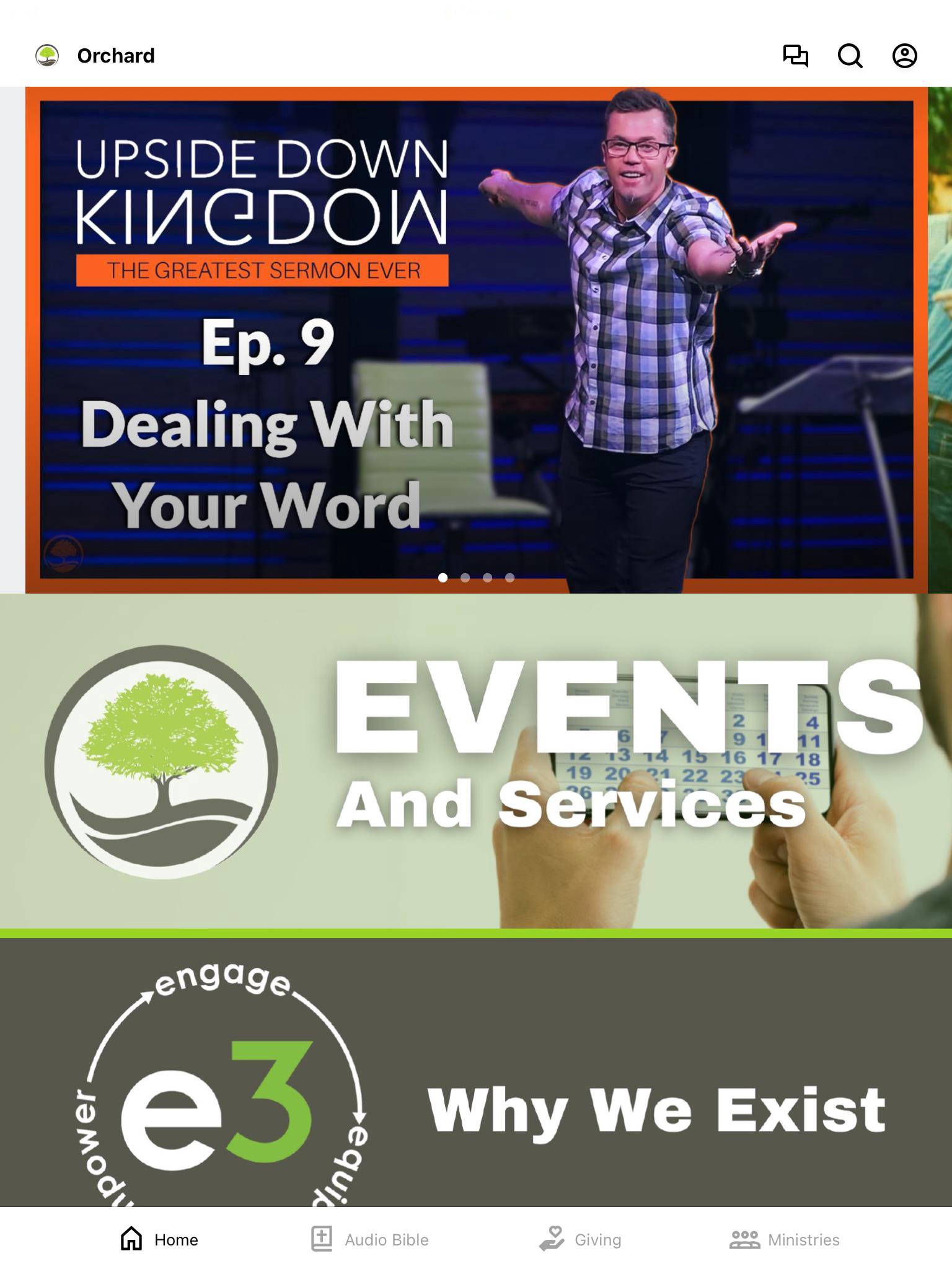 This app will help you stay connected with the day-to-day life of Orchard Church. With this app you can: watch or listen to past messages; stay up to date with push notifications; share your favorite messages via Twitter, Facebook, or email; and download messages for offline listening.