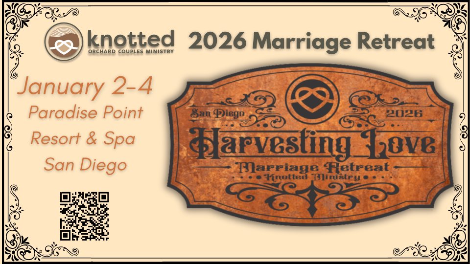 1. Room rates are $194 - $334 per night to be booked through our room block. You will need to reserve a hotel room for January 2 and 3. You may add additional nights to your stay through our room block at the same contracted rate. In addition, the hotel has waived the parking fee and resort fee for our group for your entire stay. You will need to copy and paste your hotel confirmation/acknowledgement number during your registration with the Orchard. All couples must stay at Paradise Point Resort & Spa for the retreat. You will not be charged for your hotel room until you check in for the retreat. Please do not reserve your hotel room directly with the hotel or through a 3rd party. BEFORE YOU CONTINUE WITH THIS REGISTRATION, YOUR HOTEL ROOM MUST BE BOOKED THROUGH OUR ROOM BLOCK. CLICK HERE TO ACCESS OUR HOTEL ROOM BLOCK.