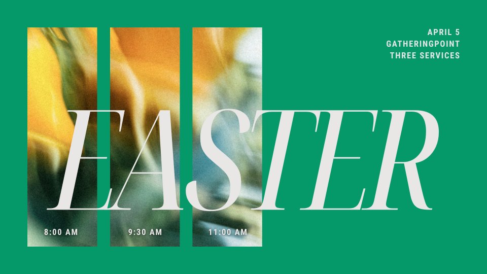 You're invited to celebrate Easter with us! Experience a special time of worship and hear the powerful story of Jesus' sacrifice. No matter where you’ve been or what you believe, you are welcome here. Come as you are and experience the joy and hope of Easter with us!