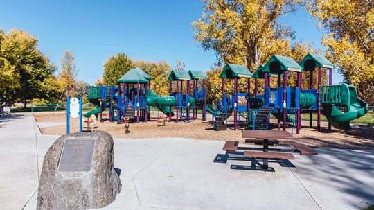 DeMeyer Park is a large neighborhood park located in West Boise. The park is 12.84 acres and amenities include a pond, restrooms, open play areas, conservation station, volleyball court, basketball court and a playground. It also has a wonderful creek that you can float in the summer that goes from one end of the park to the other. Please bring your water clothes, towels, sunscreen, good walking shoes, and sack lunch. There are also fantastic trees for climbing, an amazing playground as well as a fishing pond.