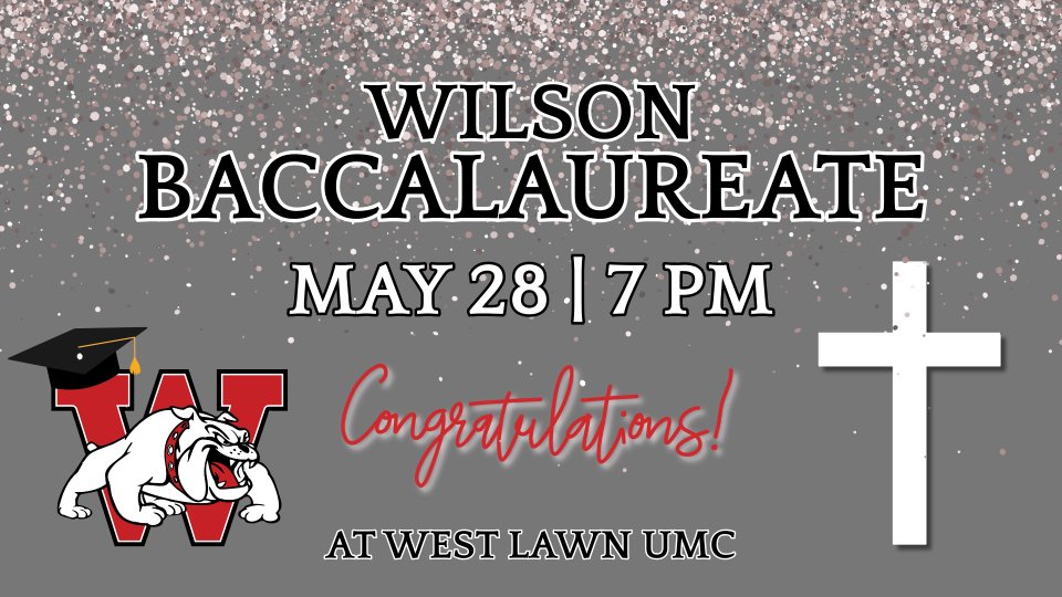 West Lawn UMC is honored to host this year’s Baccalaureate service for the Wilson High School Class of 2025—for the second year in a row! Join us in the Sanctuary at 7 PM as we celebrate the graduating class with student-led prayers, Scripture readings, and music. Pastor Chris will deliver the keynote message. All are welcome to attend this special evening of faith and reflection.