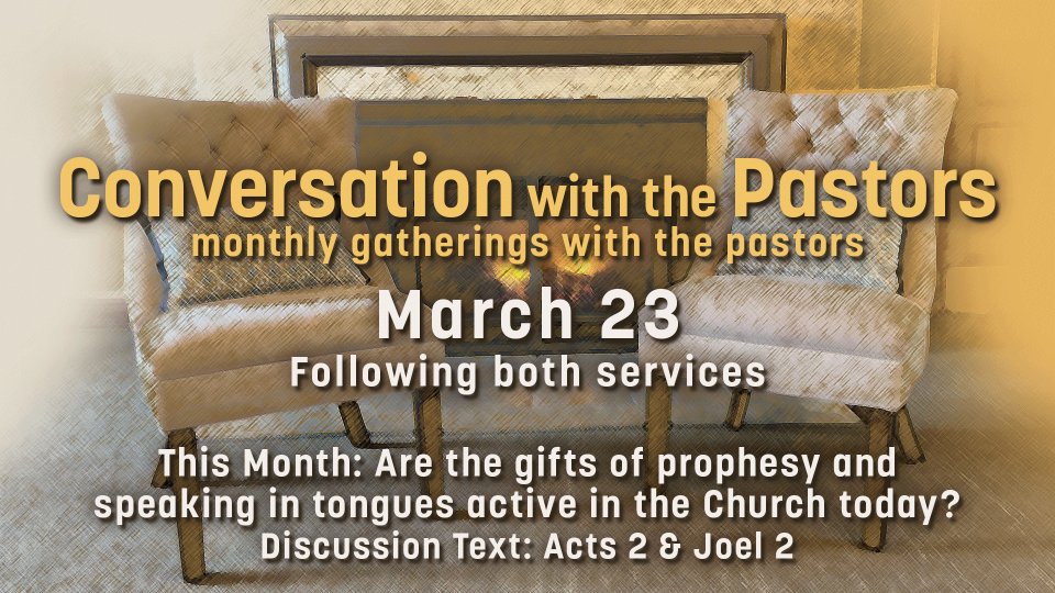 Join in conversation with the pastors and church family for lively discussion on a variety of topics. Bring your questions and hear about current issues of the church.