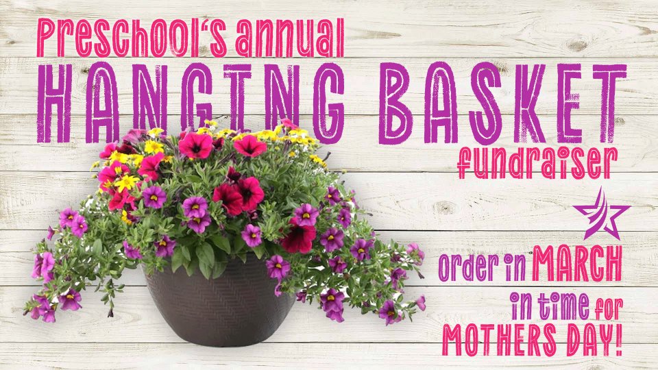 CLICK REGISTER NOW to order and pay for your Hanging Basket(s) Hanging Baskets: $40 each. These hanging baskets are grown and sold through Buds & Blossoms Garden Center in Zillah. They make an excellent Mother's Day gift or can be a beautiful addition to any front porch, deck, or small business storefront! All orders must be placed by Sunday, March 30. Pick-up in the Garden Room begins May 5 at 1pm - in time for Mother's Day.