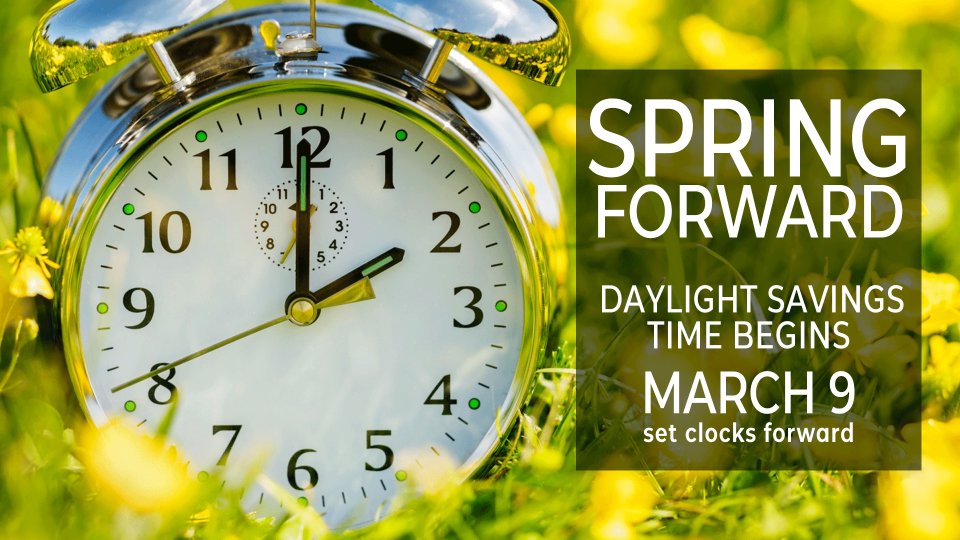 Don't forget to set your clocks FORWARD before heading to bed Saturday night