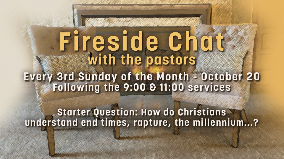 Chat with the pastors every third Sunday of the month following services in the Fireside Room. Bring your questions and hear about current issues of the church.