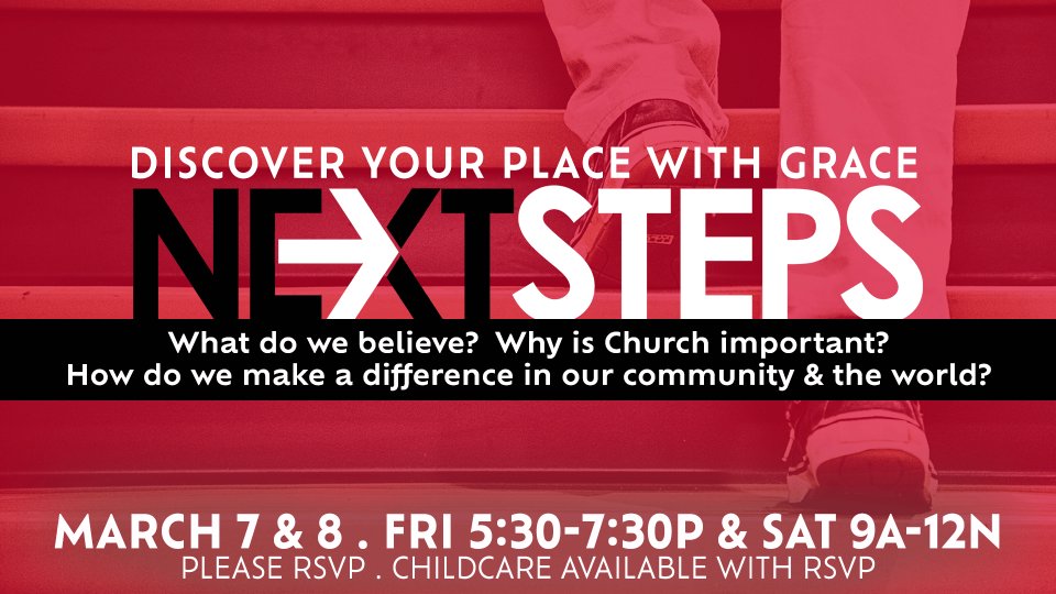Want to learn more about Grace? What we believe? Why is church important? How do we make a difference in our community & the world? Join us Friday evening March 7th from 5:30-7:30 AND Saturday, March 8th from 9am to noon. (Dinner & snacks provided) At the end, you’ll have an opportunity to join Grace of Christ.