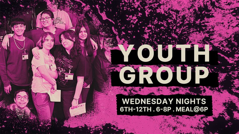 Youth Group starts at 6:00pm with Dinner in the Gym 6:45pm - 8pm