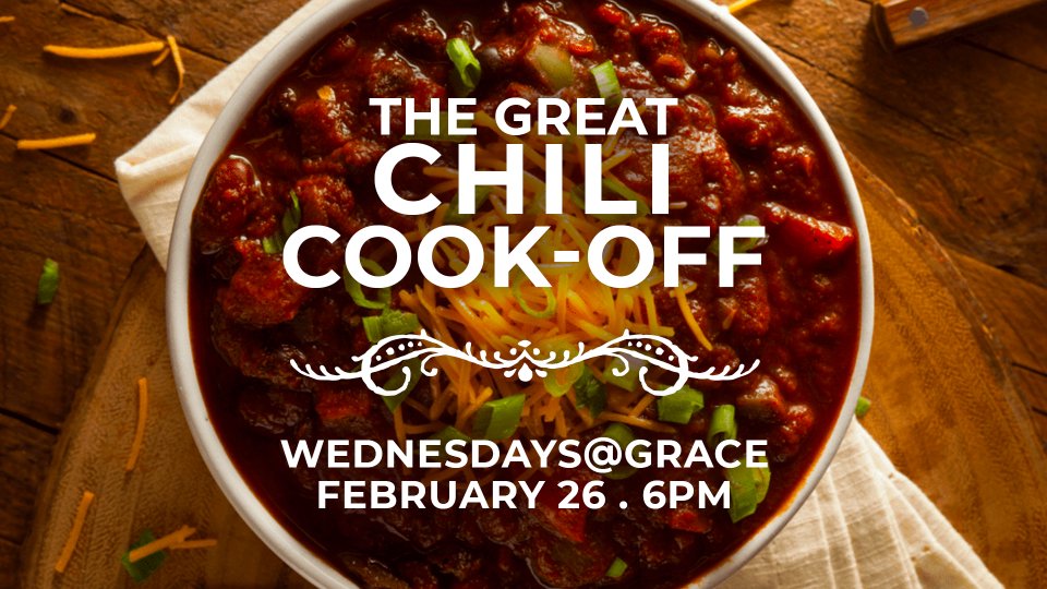 The Great Chili Cook-Off is Back! Bring your best chili to our 4th Annual Chili Cook-off on Wednesday, February 26. Dinner starts at 6:00p in the gym. If you don't want to cook chili, come to eat and judge! It is a great time for all! Following dinner there will be a Viewing & Discussion of an episode of The Chosen.