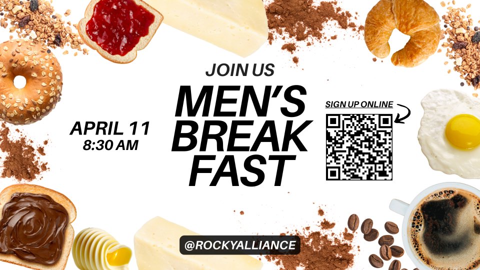 Come join the men of Rocky Alliance for a morning of good food, great fellowship and a testimony of how God is working in someone's life.