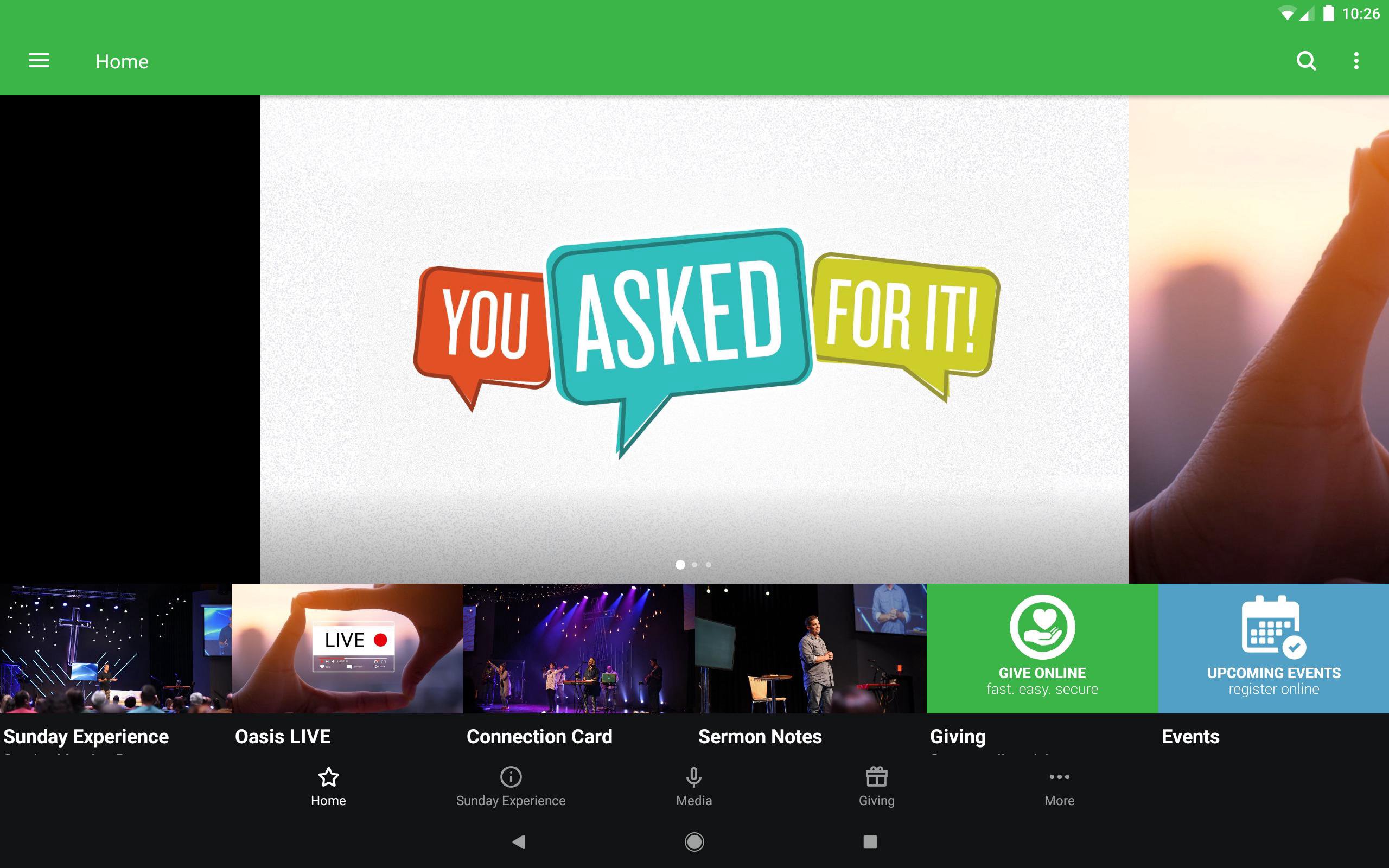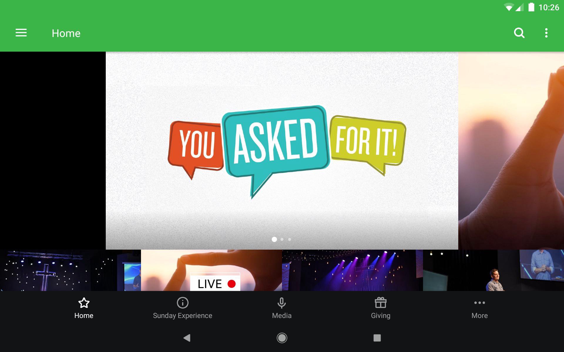 This app is full with powerful content and resources to help you grow and stay connected. With this app you can: - Watch or listen to past messages - Read the Bible - Sign up for events - Connect with resources for serving and leading - Stay up to date with push notifications - Share your favorite messages via Twitter, Facebook, or email - Download messages for offline listening
