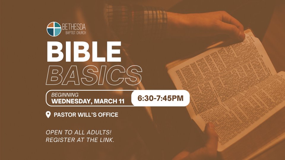 Beginning Wednesday, March 11 from 6:30–7:45pm in Pastor Will’s office, we’ll walk through key themes of the Bible, how it’s structured, and how to study it faithfully. Expect clear teaching, helpful discussion, and plenty of space to ask questions.