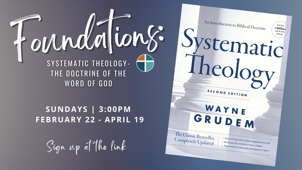 In this class, we will explore "The Doctrine of the Word of God," the foundational first part of Wayne Grudem’s Systematic Theology. Participants will examine how the Bible is the ultimate authority for our lives by diving into its four essential characteristics: authority, clarity, necessity, and sufficiency. Together, we will tackle critical questions regarding the canon of Scripture and the inerrancy of the biblical text to strengthen our confidence in God's spoken and written Word.