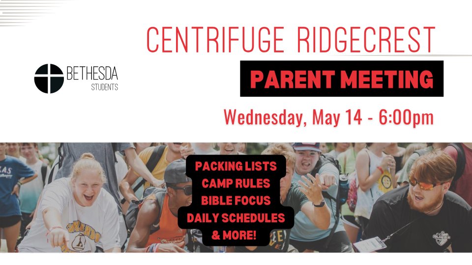 We are so excited for FUGE Camp this summer and all that God has in store for our students! As we get ready for this amazing experience, please make plans to attend our mandatory parent meeting: