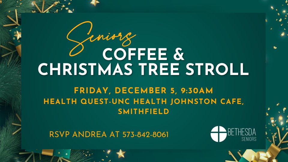 Meet us at Health Quest-UNC Health Johnston for coffee, fellowship, a tour of the facility & a stroll among the beautifully decorated Christmas trees in the mall.