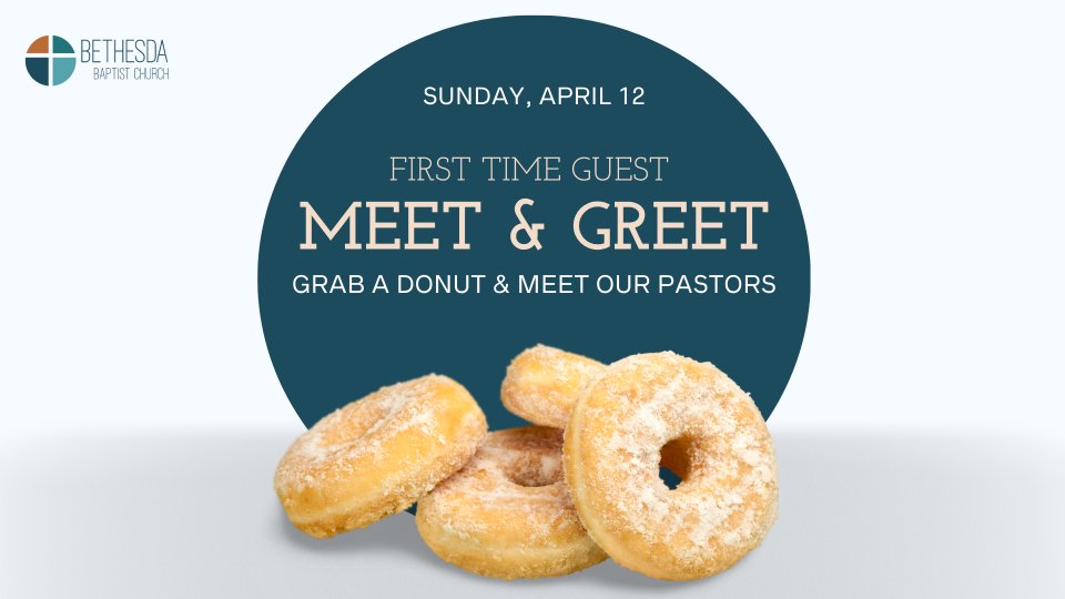 This Sunday, April 12, we’re hosting a First Time Guest Meet & Greet. If you’re new to Bethesda, we would love the opportunity to connect with you. Join us after the service to grab a donut, meet our pastors, and learn more about our church. It’s a simple, relaxed time designed to help you feel at home and get to know us a little better.