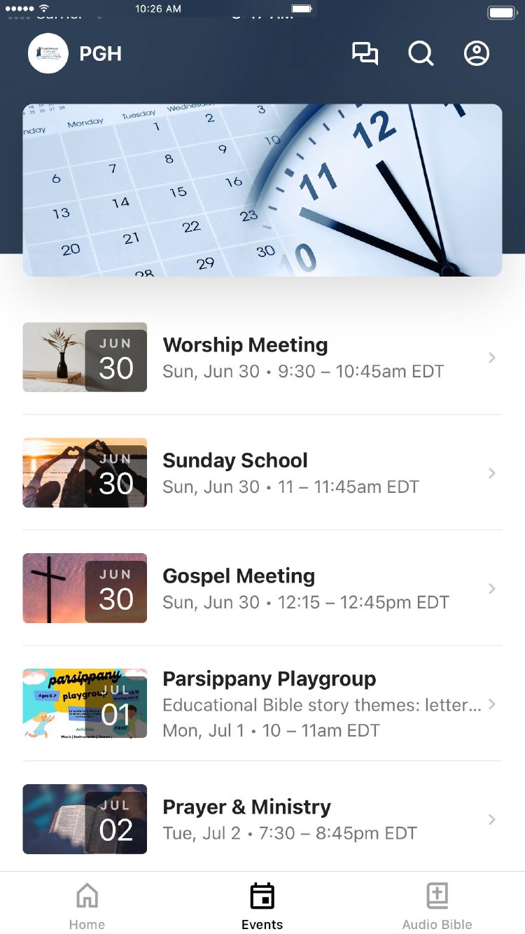 This app will help you stay connected with Parsippany Gospel Hall. With this app you can: stay up to date with push notifications; see upcoming events; and communicate through group messaging.