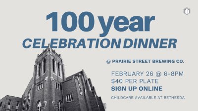 Dinner will be held at Prairie Street Brewing Co. Tickets are $40 per person/plate. (Some scholarships are available for families/individuals. Please email http://bethesdacovenant.comom for more information.) Payment is due at time of registration. Please contact the Church Office for more information.